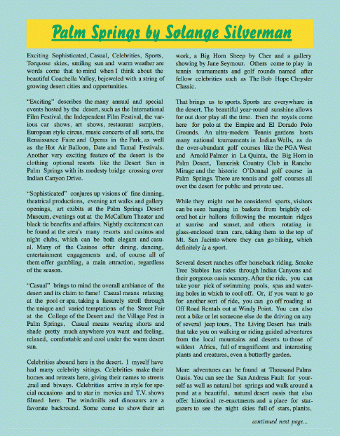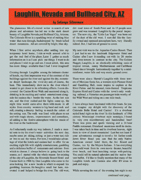 Bob's " Desert Highlights Magazine " Please Scroll Down to Read Cover Page 1. Page 2. Page 3.